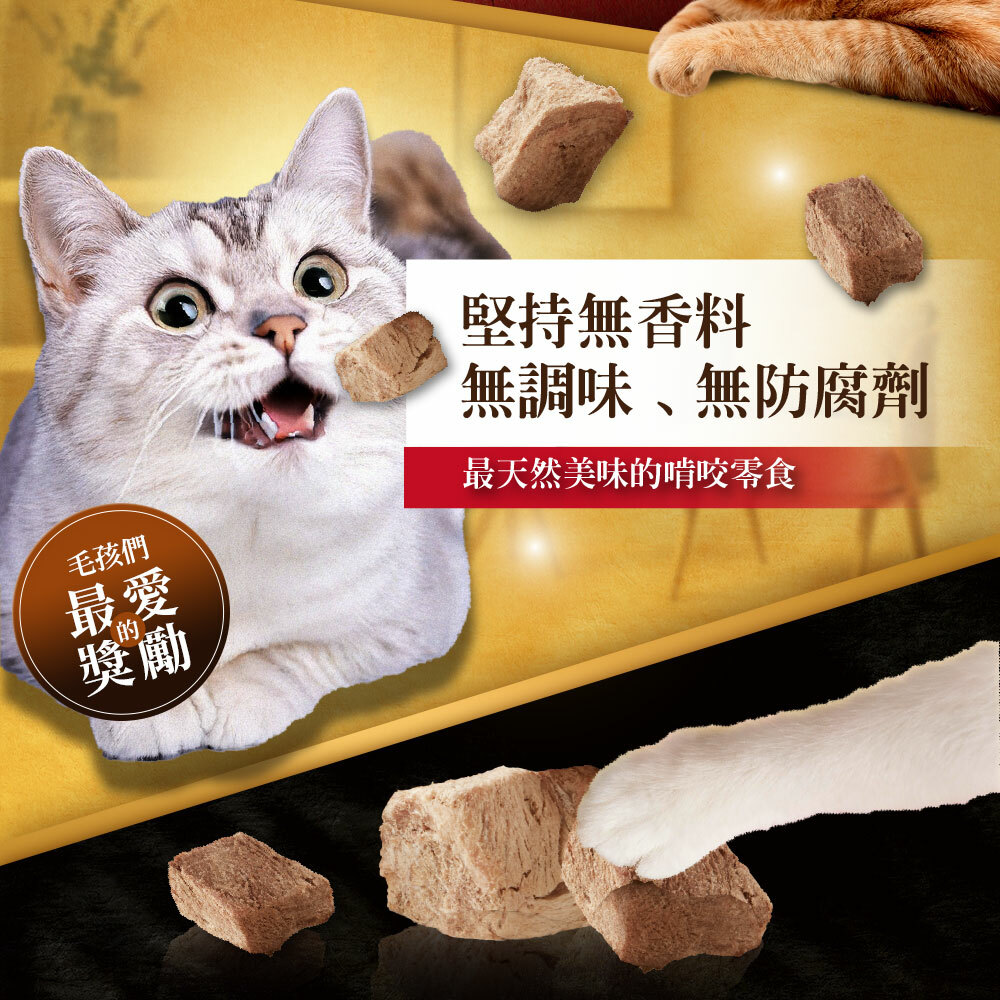 原肉率100%,零添加成分單純,給毛孩最單純的美味零食。
