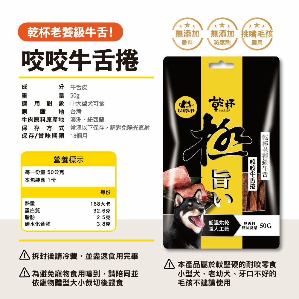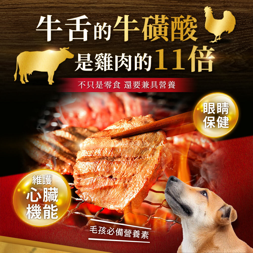 使用乾杯集團自行進口人食等級冷藏熟成頂級牛舌,70度低溫烘焙,維持口感、鎖住營養。